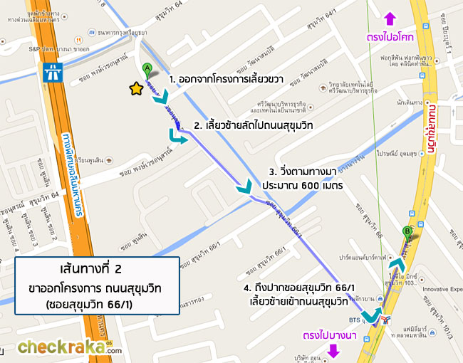 เส้นทางออกโครงการที่ 2 ออกทางซอยสุขุมวิท 66/1 เลี้ยวซ้ายเข้าถนนสุขุมวิท
