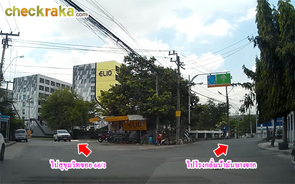 เมื่อเลี้ยวมาจะผ่านประตูทางเข้า-ออกของโครงการ Elio สุขุมวิท 64 ก่อน ให้ขับเลยไปอีกนิดค่ะ