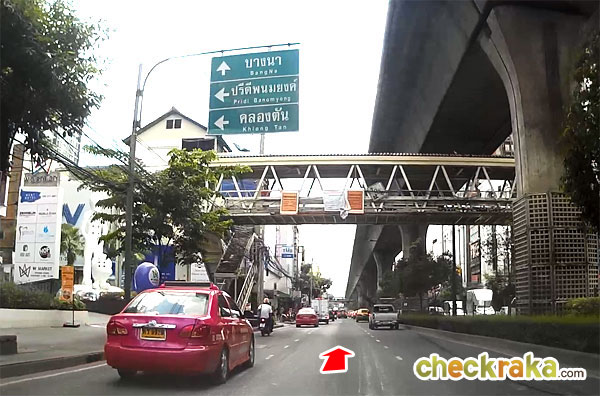 ขับมาเรื่อยๆ จะผ่าน BTS สถานีอ่อนนุช สถานีบางจาก และสถานีปุณณวิถี ตามลำดับ
