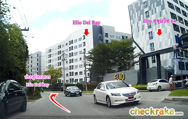 ถึงแล้วค่ะประตูทางเข้าโครงการ Elio Del Ray จะอยู่ทางขวามือ