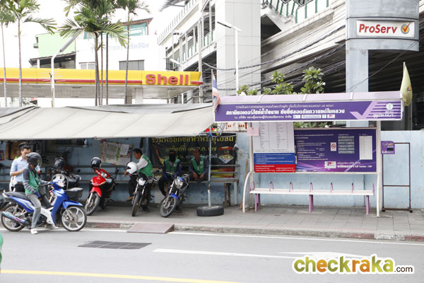 จากปากซอยเลี้ยวมาทางขวา เดินตรงมาไม่ไกลจะเป็นป้ายรถเมล์
