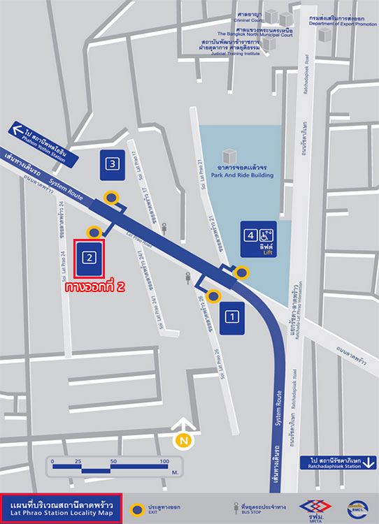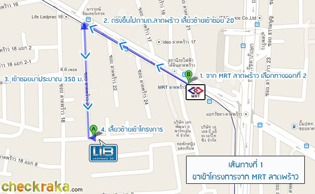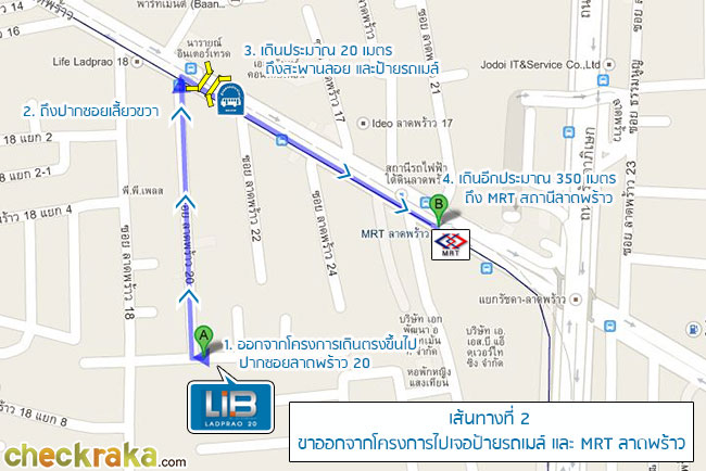 เส้นทางที่ 2 - ขาออกโครงการ ออกไปเจอป้ายรถเมลล์ (ปากซอยลาดพร้าว 20) และ MRT สถานีลาดพร้าว