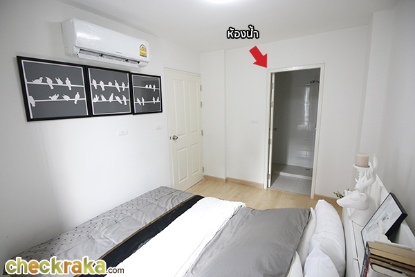 เข้ามาในห้องนอนบ้าง ห้องนอนวางเตียง 6 ฟุตแบบเต็มพื้นที่เลยค่ะ ทีวีอาจจะต้องใช้แบบติดผนังเอานะคะ