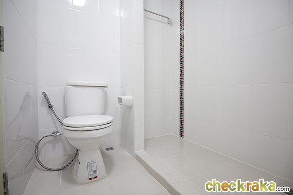 ห้องน้ำของที่นี่จะมี 1 ห้อง และจะอยู่ในห้องนอน ถ้าแขกมาก็ต้องผ่านห้องนอนเข้ามาค่ะ ตรงนี้อาจจะไม่สะดวกเท่าไรนัก