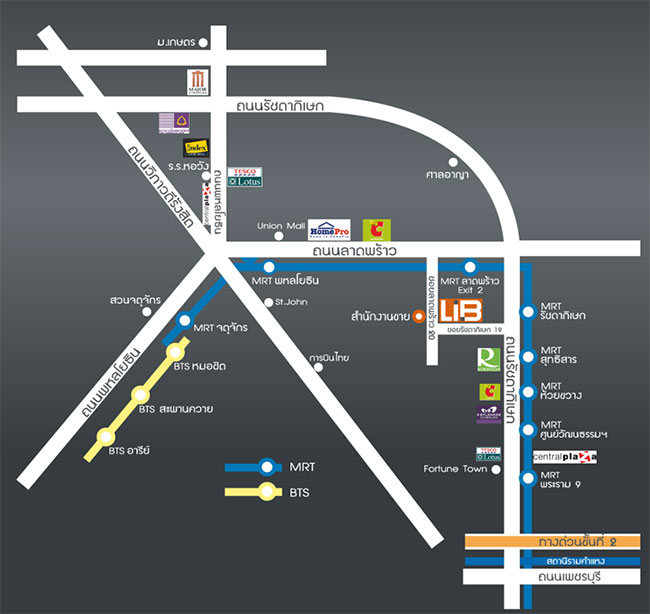 ถนนลาดพร้าวขึ้นชื่อเรื่องรถติดเป็นอันดับ 1 เพราะเป็นถนนที่กระจาย แตกย่อยไปตามถนนอื่นๆ ได้มากมาย เช่น ถนนรัชดาภิเษก ถนนวิภาวดีรังสิต ถนนพหลโยธิน อีกทั้งยังมีทั้งห้างสรรพสินค้า มหาวิทยาลัย โรงเรียน โรงพยาบาล เกาะเส้นนี้มากทีเดียวค่ะ แต่ก็มีข้อดีคือมีซอยเล็กๆ ที่ สามารถวิ่งลัดไปยังถนนเส้นอื่นๆ ได้ค่อนข้างมาก ที่สำคัญมีรถไฟฟ้าคอยบริการเพื่อหนีปัญหารถติดได้เป็นอย่างดี ในส่วนของโครงการลิปป์ ลาดพร้าว 20 ดูจากแผนผังตามรูปด้านล่างได้เลยค่ะ