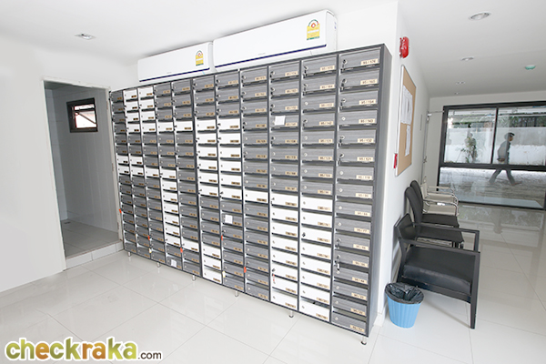 ตรงส่วนทางเข้าของรถยนต์นี้จะมีเจ้าหน้าที่รักษาความปลอดภัยตลอด 24 ชั่วโมง และมีไม้กั้นกระดก รวมถึง Access Card ค่ะ ส่วนที่จอดรถนั้นจะจอดที่ใต้อาคาร จอดได้เพียง 58 คัน (ไม่รวมซ้อนคัน) เข้ามาภายในอาคารแล้วจะเจอตู้รับจดหมายและชุดเก้าอี้สำหรับนั่งรอค่ะ ลิฟต์ของโครงการมีทั้งหมด 2 ตัว