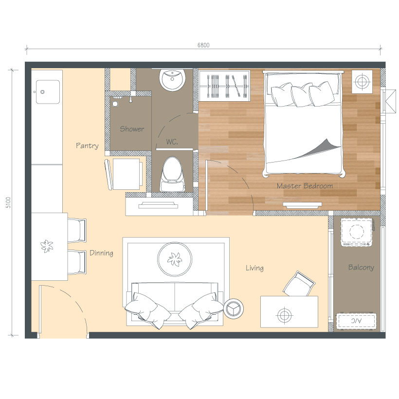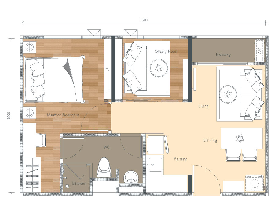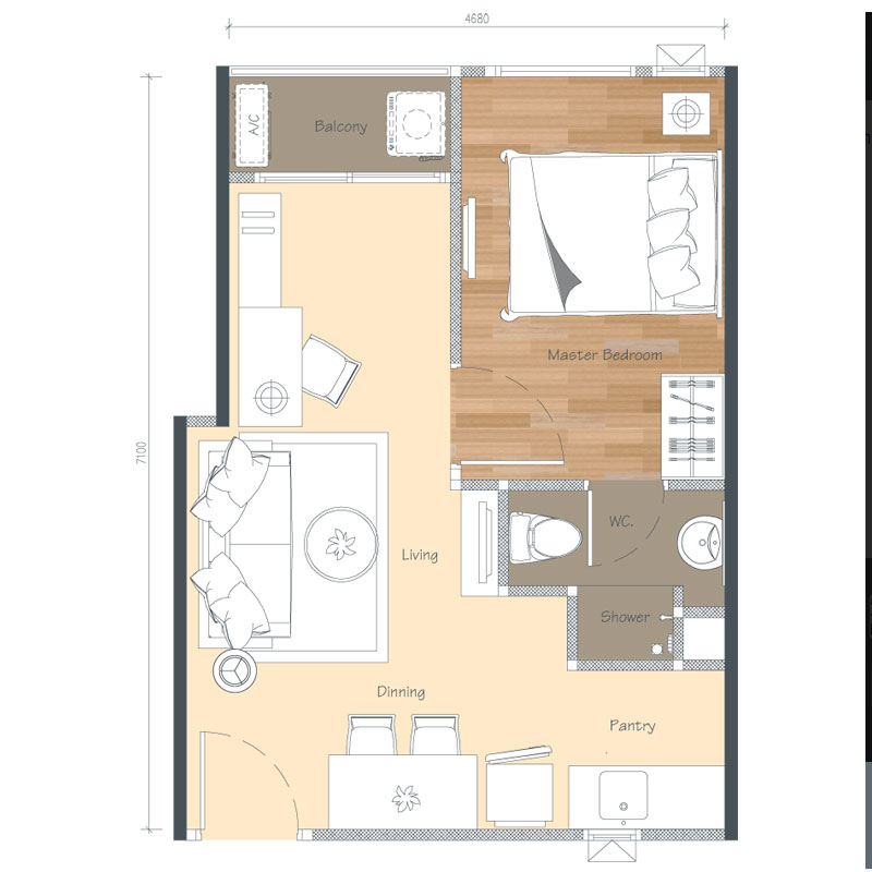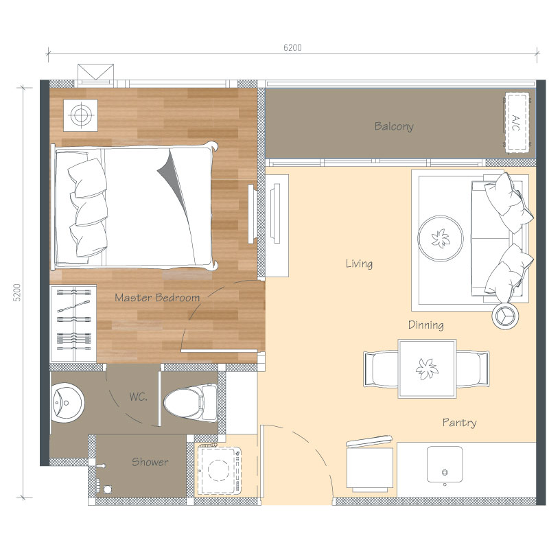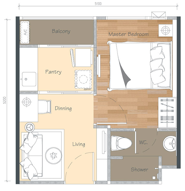 Floor Plan ห้องแบบ A ขนาด 26.25 ตร.ม.