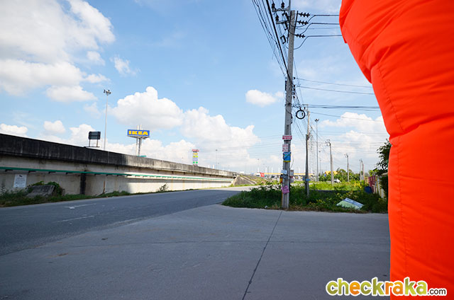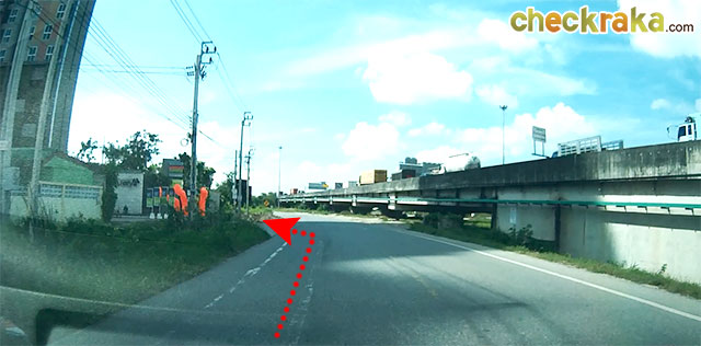 ลองมาดูภาพด้านล่างประกอบตัวอย่างการเดินทางดูนะคะ ถ้ามาจากแยกบางนาให้ตรงไปเรื่อยๆ มุ่งหน้าชลบุรีค่ะ พอตรงมาประมาณ 13 กม. ผ่านถนนกิ่งแก้วจะเห็นป้ายสะพานกลับรถ ให้เราเตรียมกลับรถได้เลยค่ะ พอขึ้นสะพานกลับรถมาก็จะเห็นจุดกลับรถทางขวามือ ให้กลับรถได้เลยค่ะ พอลงสะพานกลับรถมาแล้วก็ให้ตรงไปเรื่อยๆ มองไปทางซ้ายมือจะผ่าน Market Village จากจุดกลับรถ ตรงมาประมาณ 4.5 กม. เตรียมชิดซ้ายยึดตามป้ายถนนกาญจนาภิเษก ตรงมาอีกนิดนึงให้ออกช่องทางซ้ายสุดเพื่อที่จะเข้าโลคัลโรดเพื่อไปโครงการค่ะ ตรงตามทางไปเรื่อยๆ เลยค่ะ จะเห็น เอ สเปซ มี บางนา ที่กำลังก่อสร้างอยู่ข้างหน้าพอดี พอตรงตามทางมาอีกนิดก็จะถึงทางเข้าโครงการที่อยู่ทางซ้ายมือค่ะ ด้านหน้าทางเข้าโครงการค่ะ เส้นทางเข้าโครงการที่ 2 มาจากวงแหวนรอบนอก เข้าโครงการทางโลคัลโรดตรงด่านเก็บค่าผ่านทางบางแก้ว