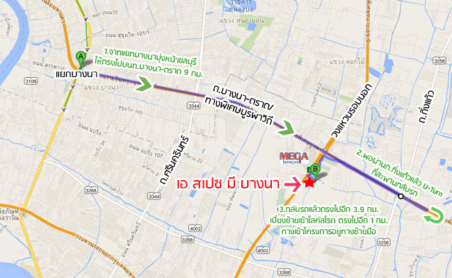 เส้นทางจากโครงการไป Mega บางนา