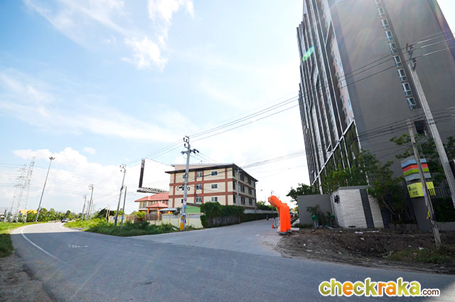 บรรยากาศทางเข้าออกโครงการด้านโลคัลโรดยังเป็นพื้นที่ว่างๆ อยู่ค่ะ หากมองจากทางเข้าออกโครงการด้านโลคัลโรดออกไปจะเห็น IKEA อยู่ฝั่งตรงข้ามเลยค่ะ บรรยากาศโครงการทางด้านซอยมหาชัย