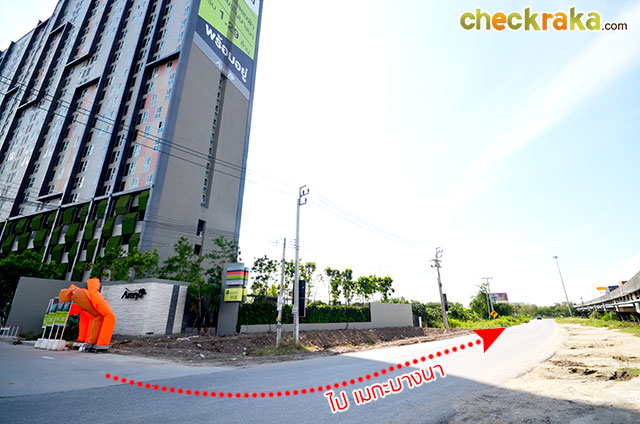นั้นอยู่ใกล้ทางออกโครงการด้านถนนโลคัลโรด โดยอยู่ใกล้กับ Mega บางนา เพียง 650 ม. เท่านั้นค่ะ ส่วนบริเวณรอบๆ โครงการก็จะถึงเป็นพื้นที่ว่างอยู่มาก ออกโครงการด้านซอยมหาชัยนั้นก็จะมีร้านสะดวกซื้อ, ร้านอาหาร, ร้านขายยา อยู่หลายร้านเหมือนกันค่ะ บรรยากาศโครงการทางด้านโลคัลโรด