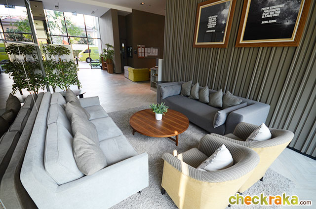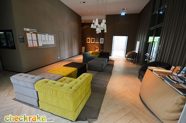 สวนพักผ่อนบริเวณชั้น 1 ใกล้ทางขึ้นลานจอดรถ ทางโครงการจัดชุดเก้าอี้มาให้หลายตัวเลยค่ะ ป้อม รปภ. และทางขึ้น-ลง ลานจอดรถ ลานจอดรถเริ่มตั้งแต่ชั้น 2 - 4 คิดเป็น 40% ช่วงขึ้นลงเวลาที่รถสวนกันภายในลานจอดรถมีความกว้างพอสมควร โครงการนี้จัดพื้นที่รับรองที่เป็นในส่วนของ Lobby ไว้ค่อนข้างเยอะทีเดียวค่ะ เราไปดูจุดแรกกันก่อน ถูกตกแต่งให้เป็นโซฟาสีๆ อยู่ตรงกลางก่อนจะผ่านเข้าลิฟต์ไปยังห้องพักอาศัย ถัดมาก็จะเป็นชุดโซฟารับแขกพร้อมโต๊ะกลางอีกหนึ่งจุด