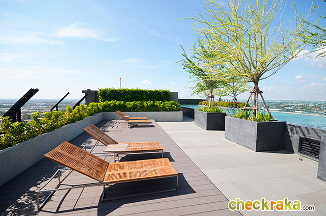 Panorama Lobby ล็อบบี้ขนาดใหญ่เชื่อมพื้นที่ภายในกับ Plaza Space และแลนด์สเคปสวนภายนอก สระว่ายน้ำลอยฟ้าแบบ Infinity Edge Pool ขนาด 6.2 x 35 เมตร ที่ชั้นดาดฟ้า Pool Deck เทอเรซพักผ่อนริมสระว่ายน้ำบนชั้นดาดฟ้า Pool View Fitness Room ฟิตเนสพร้อมเครื่องออกกำลังกายขนาด 100 ตร.ม. ที่ชั้นดาดฟ้า สวยลอยฟ้า Vertical Sky Garden พื้นที่ใช้สอยรวม ประมาณ 800 ตร.ม. ล็อบบี้สไตล์โมเดิร์นขนาดใหญ่ Exclusive Mailbox ตู้จดหมายที่โถงลิฟต์ประจำทุกชั้นพร้อมบริการ Plaza Space พื้นที่ร้านค้าในโครงการ ขนาดพื้นที่กว่า 700 ตร.ม. เข้า-ออกอาคารด้วยระบบ Key Card ระบบรักษาความปลอดภัยด้วยกล้องวงจรปิด CCTV และพนักงานรักษาความปลอดภัยตลอด 24 ชั่วโมง Shuttle Bus Service รับส่งคุณจากตัวโครงการสู่ห้างเมกา บางนา จุดเชื่อมต่อรถโดยสารขนาดใหญ่ ใต้ตึกมี 7-11 คอยให้บริการตลอด 24 ชม. ค่ะ รถตู้ของโครงการที่คอยบริการรับส่งลูกบ้านไป IKEA
