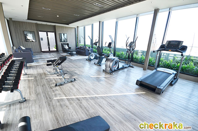 เดินเข้ามาในห้องฟิตเนสลอยฟ้า ให้ความรู้สึกสบายๆ เป็นส่วนตัวมากทีเดียวค่ะ อุปกรณ์เรียกได้ว่าครบครัน ออกกำลังกายไปชมวิวสระว่ายน้ำไป พร้อมชมสวนเขียวๆ ไปด้วย หรูหราสุดๆ เลยค่ะ วิวพาโนรามาฝั่งทิศใต้ของตัวโครงการ มีที่ให้นั่งพักผ่อนรอเล่นเครื่องเล่นภายในห้องฟิตเนสด้วยค่ะ