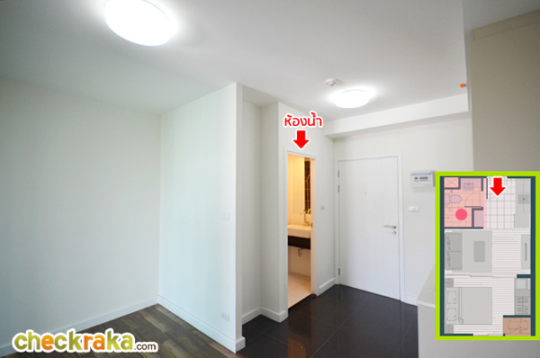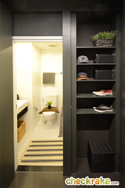 เปิดประตูเข้ามาจะเจอกับส่วนของห้องน้ำอยู่ทางขวามือ
