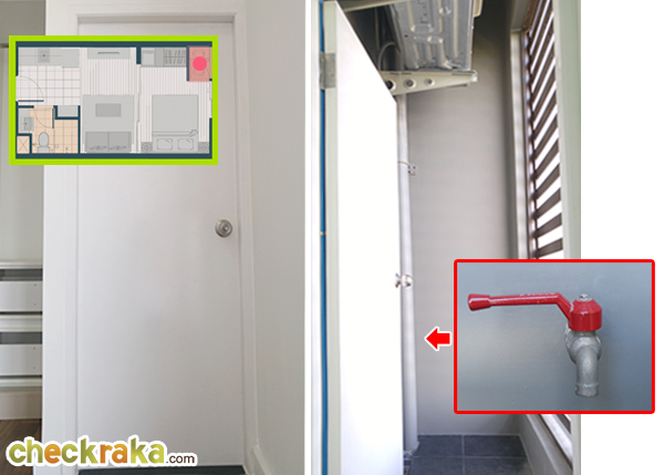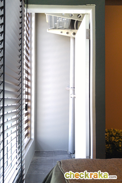 ติดกับตู้เสื้อผ้าจะเป็นประตูที่เปิดออกไปนอกระเบียง เป็นประตูบานทึบปิดกันฝนสาดมาให้เรียบร้อย