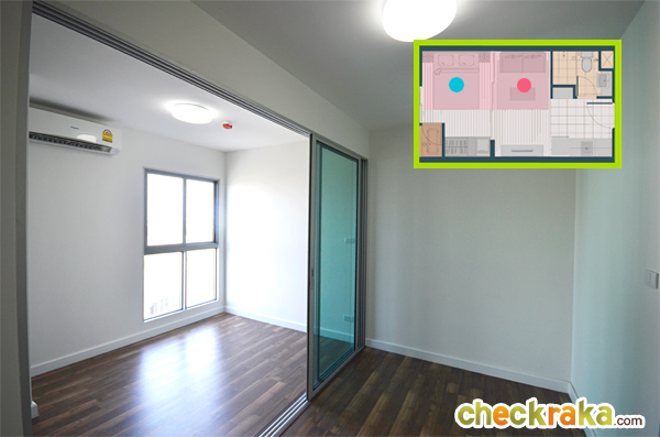 พื้นที่ด้านหน้าห้องนอน (ตำแหน่งจุดสีแดง) ไว้สำหรับวางชุดรับแขก หรือโซฟา โซนนี้ได้โคมซาลาเปาอีก 1 ดวง