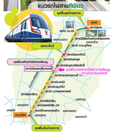 2. การเดินทางด้วยรถไฟฟ้าสายสีเขียวเข้ม (ส่วนต่อขยาย) หมอชิต-สะพานใหม่-คูคต