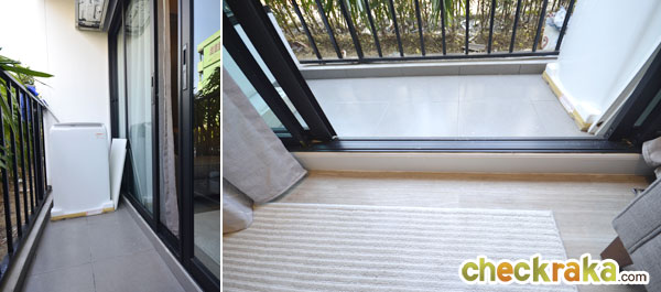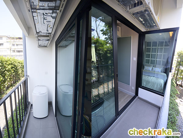 ระเบียงสำหรับใช้งานขนาดประมาณ 2.4x0.74 เมตร สามารถวางเครื่องซักผ้าขนาด 7.5 กก. ได้