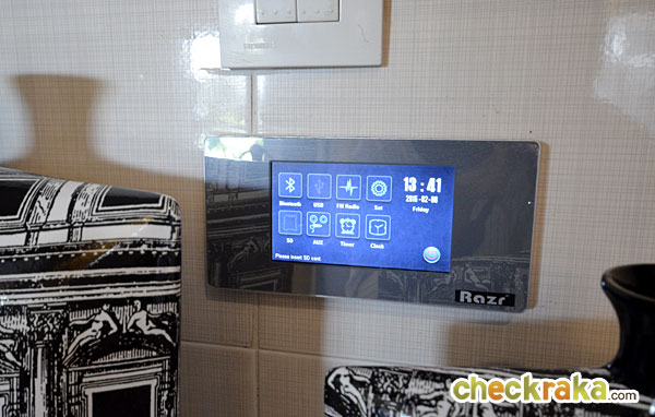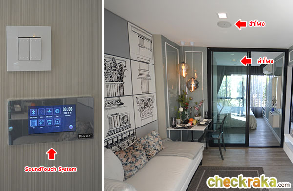 ห้อง Living room นี้จะมีเครื่องเสียงระบบ Sound Touch System หน้าจอระบบสัมผัส เสมือนเป็น Home Theater เล็กๆ สามารถต่อ SD Card, Bluetooth หรือ Mobile ได้หมด โดยจะมีลำโพงบนเพดานพร้อมติดตั้งให้ 2 จุด