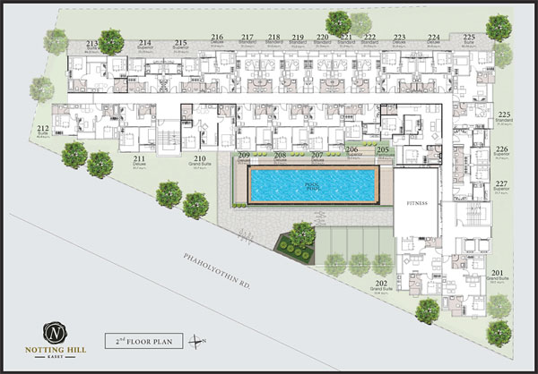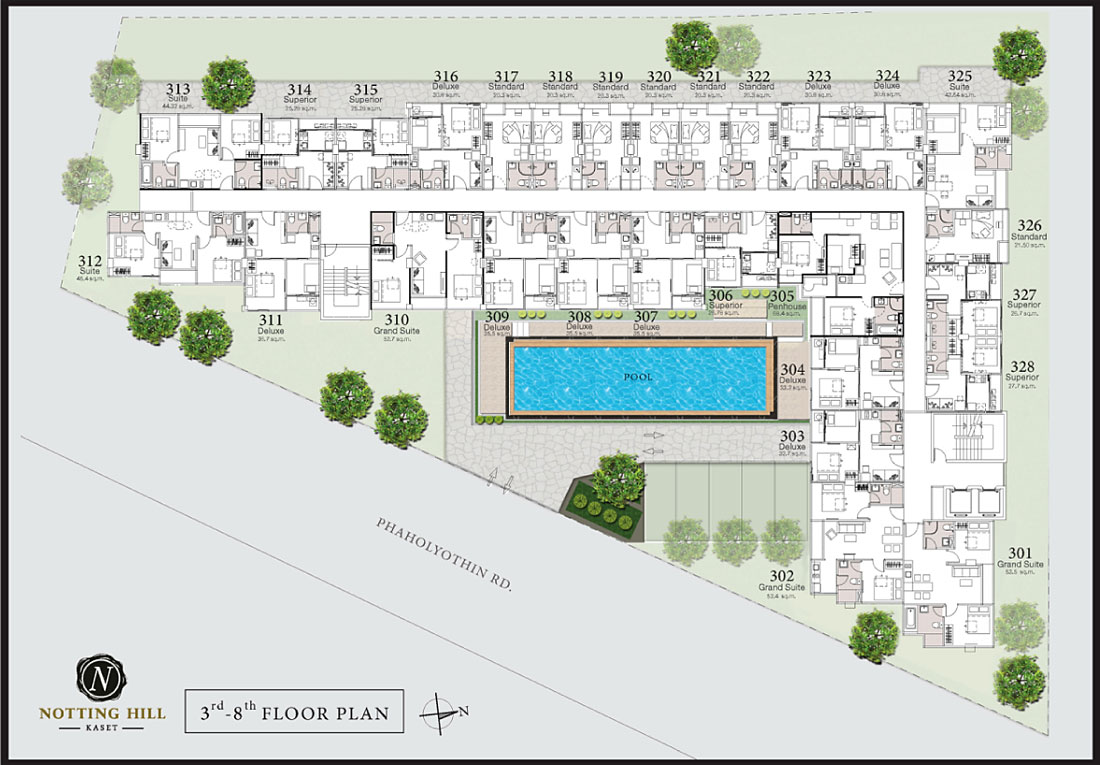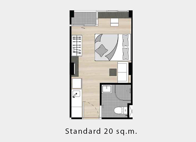 - ราคาเริ่มต้น 1.79 ล้านบาท สําหรับห้องแบบ Standard ขนาดประมาณ 20.3 ตร.ม.