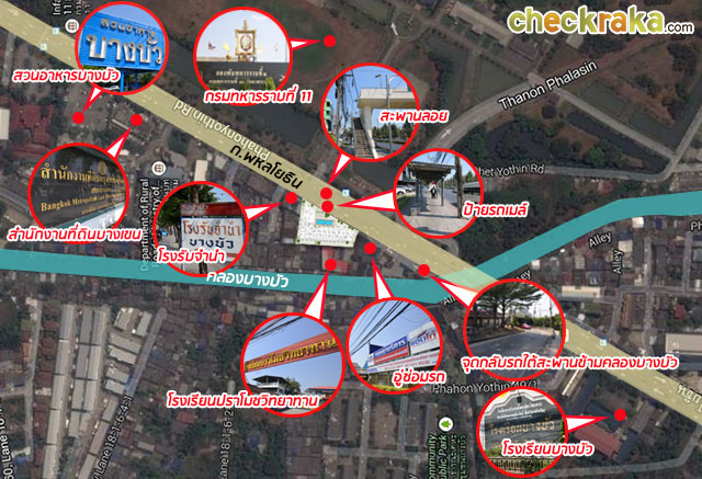 - ทำเลรอบโครงการ - โครงการนี้ตั้งอยู่ระหว่างโรงเรียนปราโมชวิทยาทานมีความสูง 2 ชั้น (ฝั่งทิศใต้) และอาคารพาณิชย์สูง 4-5 ชั้น (ฝั่งทิศเหนือ) ตรงข้ามโครงการ (ฝั่งทิศตะวันออก) ก็เป็นพื้นที่โล่งของกรมทหารราบที่ 11 รักษาพระองค์ และโซนด้านหลังโครงการ (ฝั่งทิศตะวันตก) เป็นคลองบางบัว ระยะของการเดินมองหาร้านอาหาร หรือข้างของเครื่องใช้ ค่อนข้างใช้เวลาพอสมควร เนื่องจากบริเวณรอบๆ โครงการ 100-200 เมตร จะเป็นในส่วนของโรงเรียน ร้านซ่อมรถ และร้านแต่งรถมากกว่า แต่ถ้าเลี้ยวซ้ายออกจากโครงการไป เลือกเดินออกกำลังกายเบาๆ ออกไปหาของกินร้านอาหารต่างๆ ส่วนมากจะอยู่เชิงสะพานข้ามคลองบางบัว หรือถ้าจะหาอะไรอร่อยๆ หนักๆ ให้ลองปั่นจักรยานขึ้นไปทางวัดพระศรีมหาธาตุจุดนั้นจะมีของกิน ร้านอาหาร ร้านข้าวต้ม ร้านเสริมสวย ร้านเสื้อผ้า เยอะกว่าเพราะจะมีหอพักของนักศึกษาทั้งจากมหาวิทยาลัยศรีปทุม มหาวิทยาลัยเกริก และมหาวิทยาลัยราชภัฏพระนครพักอยู่ในซอยพหลโยธิน 55 กันเป็นจำนวนมากเรียกได้ว่าคึกคักทีเดียวค่ะซอยนี้ แต่ก็มีระยะทางที่ไกลกว่าพอสมควรเลย