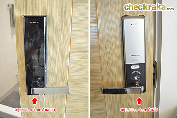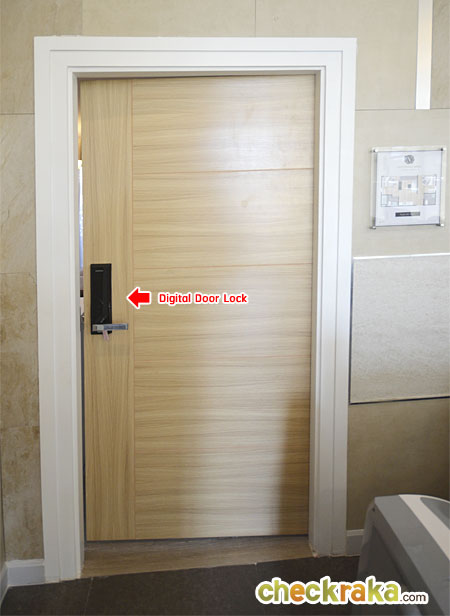 สำหรับประตูห้องที่ได้จะเป็นประตูไม้สำเร็จรูป MDF พร้อมระบบ Digital Door Lock ของ Samsung