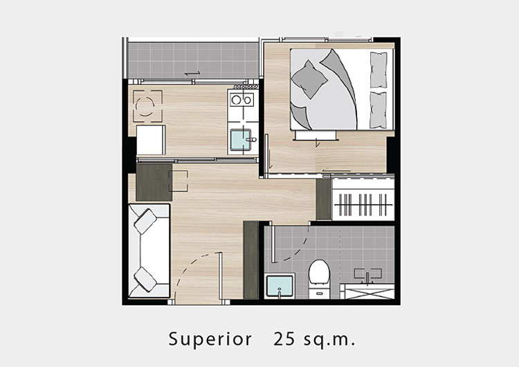 ขนาด 20.3 ตร.ม. ราคาเริ่มต้นประมาณ 1.79 ล้านบาท - ห้องแบบ SUPERIOR (1 ห้องนอน)