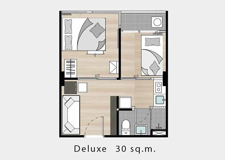 ขนาด 25.3 - 27.7 ตร.ม. ปัจจุบัน Sold Out แล้ว - ห้องแบบ DELUXE (1 ห้องนอน)