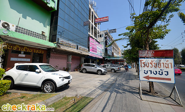ยังคงขับตรงไปเรื่อยๆ เริ่มใกล้ตัวโครงการแล้วค่ะ ซ้ายมือเป็นป้ายบอกว่าเกือบถึงวัดบางบัว