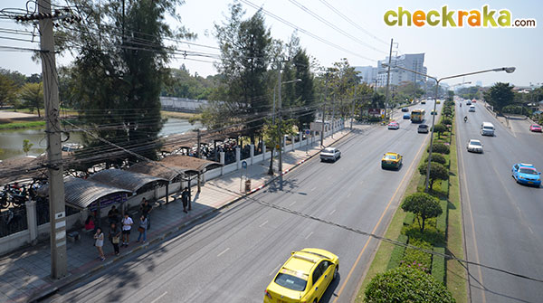 ผ่านกรมวิทยาศาสตร์ทหารบก และโรงแรมมารวยการ์เด้น ฝั่งขวามือ