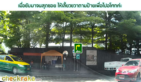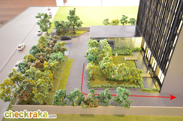 จากประตูทางเข้าขับตรงเข้ามาแล้วเลี้ยววนทางซ้ายมือเพื่อเข้าจุด Drop off บริเวณหน้า Lobby