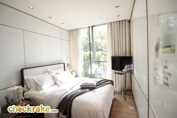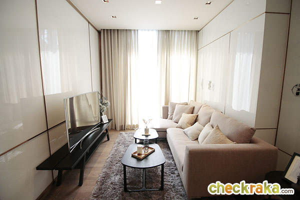 ห้องของโครงการนี้ขายแบบ Fully Fitted มีเฟอร์นิเจอร์ให้บางส่วน อาทิ ชุดเคาน์เตอร์ครัวแบบ Built-in พร้อมกับเตาไฟฟ้า เครื่องดูดควัน รวมทั้งไมโครเวฟ และตู้เย็นแบบ Built-in ด้วย (ยกเว้นเครื่องซักผ้า) วอลเปเปอร์ห้องจริงเป็นฉาบเรียบสีขาวนะคะ โดยห้องของโครงการนี้เค้าโดดเด่นกว่าโครงการอื่นตรงที่ เป็นห้องทีมีเพดานสูงถึง 2.75 เมตร มีระเบียงทุกห้อง ซึ่งประตูที่ระเบียงก็สูงจรดฝ้าเลยทีเดียว โดยมีความสูงอยู่ที่ 2.95 เมตร พร้อมทั้งซ่อนรางผ้าม่านมาให้ด้วย ทำให้ห้องของที่นี่ดูสูงโปร่ง มีแสงสว่างค่อนข้างมาก และดูสบายไม่อึดอัดค่ะ โดยห้องของโครงการนี้แบ่งออกเป็น 4 แบบ ด้วยกัน