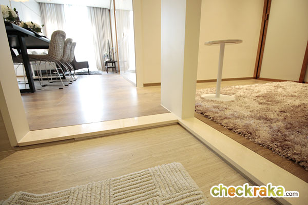 พื้นห้องเป็นลามิเนตลายไม้หนา 10 มิลลิเมตร ให้ความรู้สึกเหมือนไม้จริง