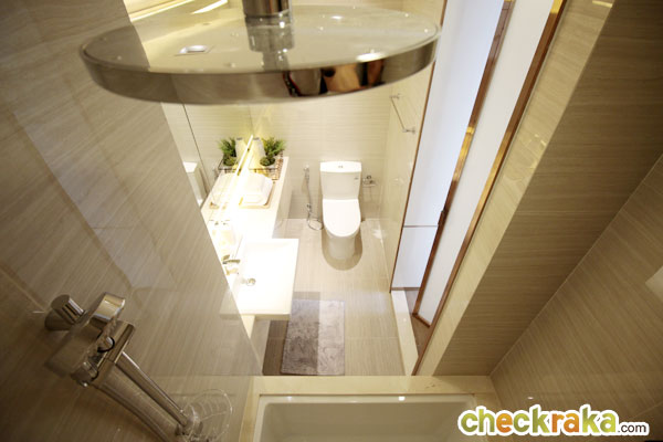ย้ายเข้าไปดูในห้องน้ำกันค่ะ ด้านหน้าที่เห็นเป็นตู้เสื้อผ้าเป็นเพียงของตกแต่งที่ทางโครงการออกแบบให้ดูเป็นไอเดียเท่านั้น