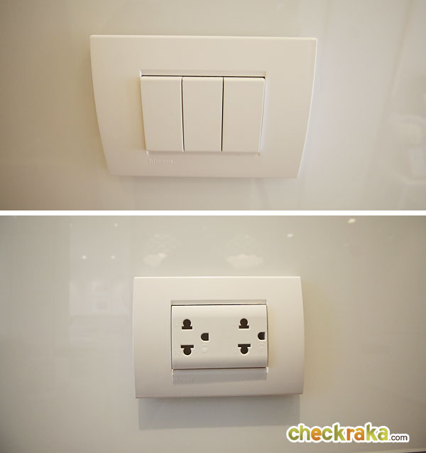 ปลั๊กไฟที่เห็นบริเวณข้างหัวเตียง