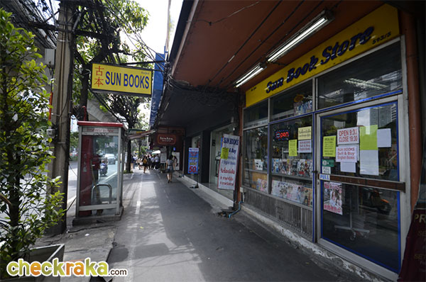 กลับออกมาที่ริมถนนค่ะ ป้ายเหลืองคือร้านหนังสือญี่ปุ่น Sun Books