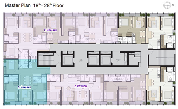 Master Plan ชั้น 18-28 จะเหมือนกันคือเป็นส่วนพักอาศัยมียูนิตต่อชั้นอยู่ที่ 9 ยูนิต