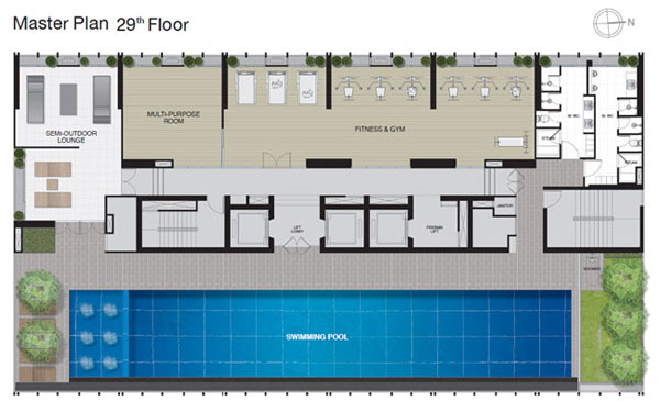 Master Plan ชั้น 29 เป็นส่วนของ Facility ประกอบด้วย ส่วนของสระว่ายน้ำ, ห้องฟิตเนส, ห้องสตรีมแยกชายหญิง,