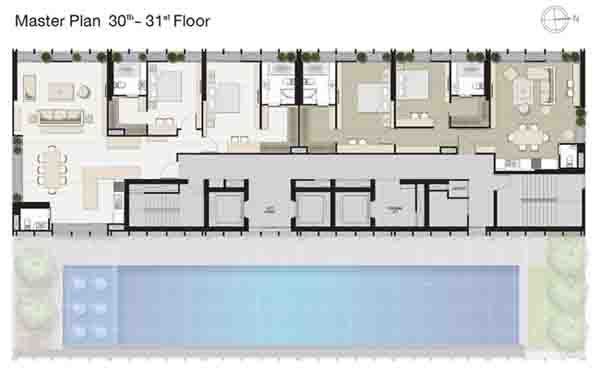 Master Plan ชั้น 30-31 จะเหมือนกันคือเป็นส่วนพักอาศัย ซึ่งเป็นห้องแบบ Penthouse มีเพียงชั้นละ 2 ยูนิตเท่านั้น