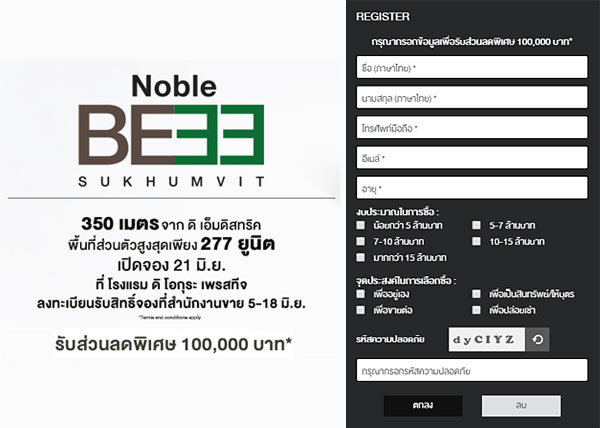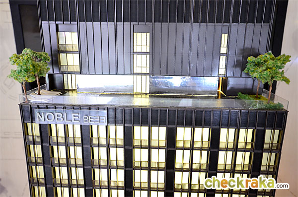 โครงการ "Noble BE33" (โนเบิล บีเทอร์ตี้ทรี) เป็นคอนโด High-Rise สูง 31 ชั้น จำนวน 1 อาคาร มียูนิตพักอาศียเพียง 277 ยูนิต พร้อมที่จอดรถชั้นใต้ดิน 5 ชั้น ตั้งอยู่บนขนาดที่ดิน 2-0-5.9 ไร่ ลักษณะสี่เหลี่ยมผืนผ้า อาคารรูปทรงตัว I ออกแบบสไตล์ Modern เรียบหรูตามแบบฉบับเฉพาะของโนเบิล ลักษณะห้องพักอาศัยหันหน้าไปทางทิศตะวันออกจะเป็นวิวสุขุวิท และทิศตะวันตกซึ่งเป็นวิวอโศก ซึ่งทั้ง 2 ทิศค่อนข้างเป็นวิวเปิดโล่ง สิ่งอำนวยความสะดวกจะอยู่ที่ชั้น G และชั้นที่ 29 ของโครงการ มีลิฟต์โดยสาร 2 ตัว และลิฟต์บริการ 1 ตัว อัตราการใช้ลิฟต์เฉลี่ยอยู่ที่ 138:1 เวลาเร่งด่วนอาจต้องรอนานหน่อย