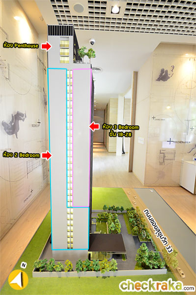 โมเดลโครงการมุมมองจากทิศตะวันออก ติดถนนซอยสุขุมวิท 33