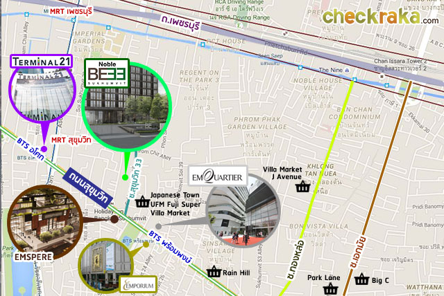 ติดกันกับ Beverly 33 ก็ถึงสำนักงานขายและที่ตั้งของ Noble BE33 แล้วค่ะ สภาพแวดล้อมใกล้เคียงและการจราจร