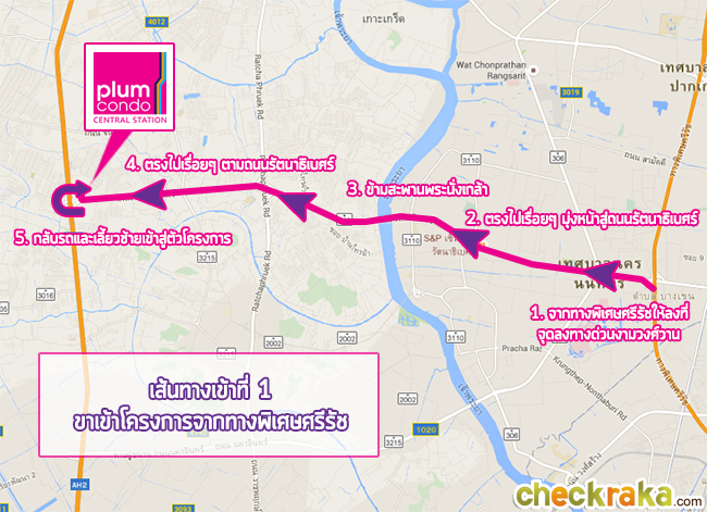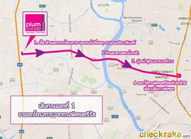 เส้นทางออกที่ 1 - ขาออกโครงการจากทางถนนรัตนาธิเบศร์และขึ้นทางพิเศษศรีรัช
