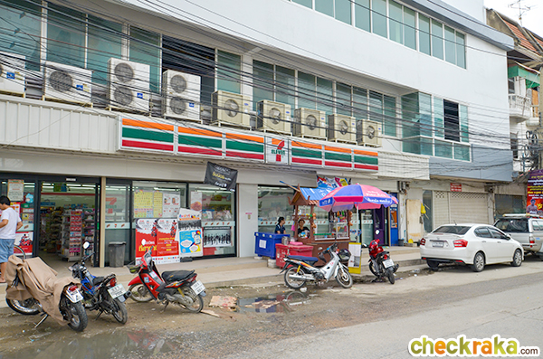 เซเว่น อีเลฟเว่นหน้าปากทาง หมู่บ้านรัตนาธิเบศร์ คูหาแรกฝั่งธนาคารกสิกรไทยมีร้านก๋วยเตี๋ยว