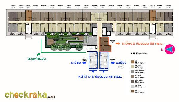 Floor Plan ชั้น 6 จะมีทั้งสวนพักผ่อน และห้องพักอาศัย