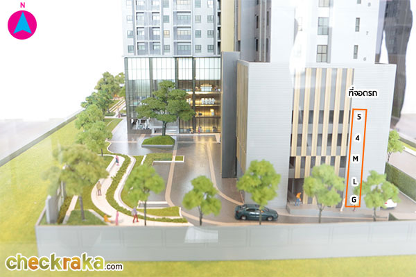 โมเดลโครงการมุมมองจากทิศใต้จะมีในส่วนของ The Living ที่เป็นเหมือนล็อบบี้ขนาดใหญ่มีถึง 3 โซน ให้เลือกสำหรับพักผ่อน หรือสังสรรค์ตามต้องการ และ The Club ทางโครงการดีไซน์เสมือน ห้องรับรองขนาดใหญ่ทั้งอ่านหนังสือ, ห้องอเนกประสงค์, ห้องประชุม และห้องเกม โมเดลโครงการมุมมองจากทิศตะวันตกเป็นอีกหนึ่งโซนที่ทางโครงการจัดให้เป็นสวนพักผ่อน รวมอยู่กับห้องพักอาศัยบริเวณชั้น 6 โมเดลโครงการมุมมองจากทิศใต้ ในส่วนของที่จอดรถจัดไว้ตั้งแต่บริเวณชั้น G-5 คิดเป็น 30% นับรวมจอดซ้อนคัน ส่วนกลางและสิ่งอำนวยความสะดวก