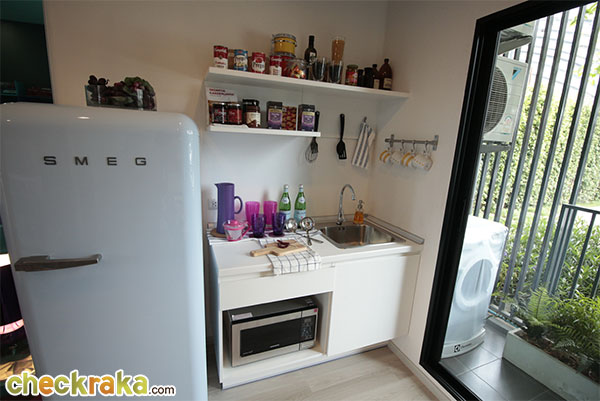 วางไมโครเวฟจะเห็นว่าทางโครงการไม่ได้ให้ในส่วนของ Hob และ Hood มา อาจจะเพราะห้องไซส์นี้