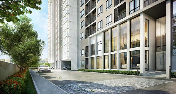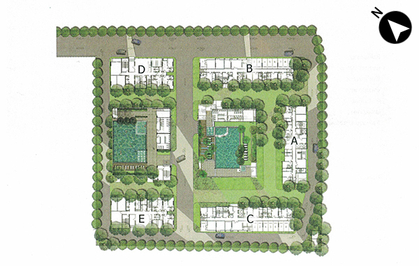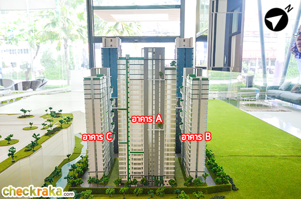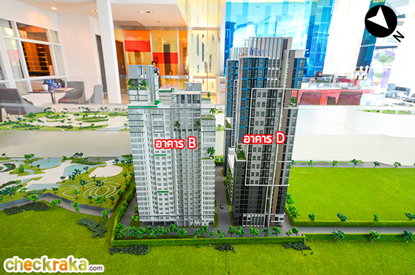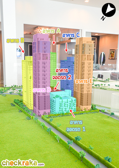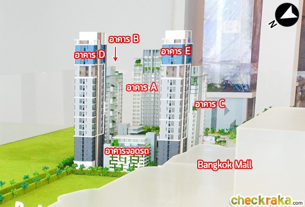มองเยื้องๆ จากทิศตะวันออกจะเห็นว่าอาคาร E และ C จะใกล้กับ Bangkok Mall มากที่สุดค่ะ