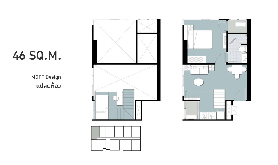 22.00 ตร.ม. Studio ราคาเริ่มต้น 2,8000,000 ล้านบาท 30.40 ตร.ม. 1 Bedroom ชั้น 1 ราคา 3,009,600 ล้านบาท 35.40 ตร.ม. 1 Bedroom ชั้น 1 ราคา 3,504,600 ล้านบาท 35.40 ตร.ม. 1 Bedroom ชั้น 6, 7, 8, 9 ราคา 3,990,000 ล้านบาท 50.90 ตร.ม. 2 Bedroom ชั้น 4 ราคา 6,540,650 ล้านบาท ตัวอย่างราคาห้อง MOFF Design